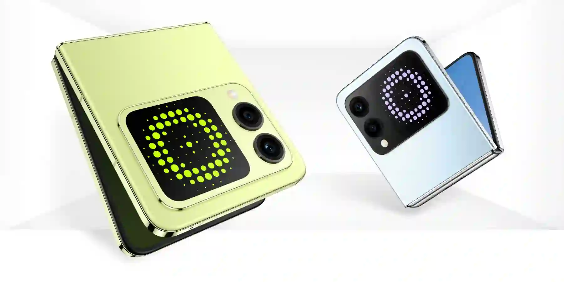يحافظ Nova Flip S على نفس مفهوم التصميم السابق، مع شاشة مربعة خلفية تضيف لمسة جمالية، وخيارات غطاء خلفي من الجلد الناعم والزجاج.