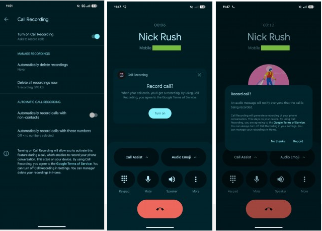 أطلقت جوجل تحديثًا جديدًا لتطبيق Google Phone يضيف ميزة تسجيل المكالمات الأصلية لهواتف Pixel 6 وما بعدها عالميًا، ويشمل التحديث دعم الهواتف الأقدم التي تعمل بنظام Android 14 عبر الإصدار المستقر رقم 198+ من التطبيق، ما يمنح المستخدمين القدرة على تسجيل مكالماتهم بسهولة سواء يدويًا أو تلقائيًا.