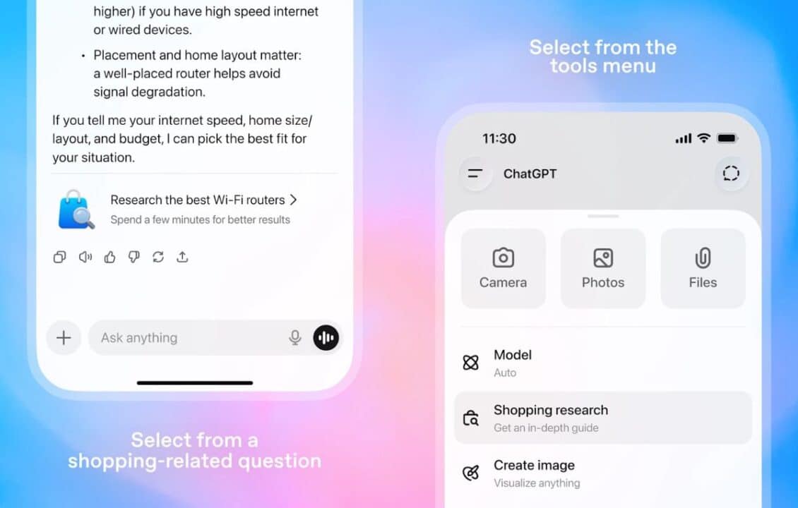 يمكن للمستخدمين الوصول إلى هذه الميزة الجديدة إما عبر اختيار خيار "بحث التسوق" مباشرة من خلال الضغط على علامة الزائد (+) الموجودة في شريط التوجيهات الخاص بالدردشة، أو بطريقة أخرى ذكية، سيقوم ChatGPT بتحويل أي طلب يراه مناسبًا إلى النموذج الجديد المتخصص في الأسئلة التجارية تلقائيًا، مثل استفسارات البحث عن "أهدأ مكنسة لاسلكية مناسبة للشقق الصغيرة".