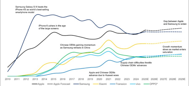 يبدو أن صناعة الهواتف الذكية مقبلة على مرحلة جديدة من الصراع على القمة، مع أفق واضح لتفوق أبل طويل المدى، حيث يُتوقع أن تظل بلا منافس حتى عام 2029، ما يعكس مرحلة هيمنة طويلة تتوافق مع خطط الشركة الأمريكية لتوسيع منتجاتها وتقديم خيارات مبتكرة تلبي احتياجات جميع شرائح العملاء، بينما تتحرك سامسونج لتعزيز مكانتها في مواجهة هذه التحديات.