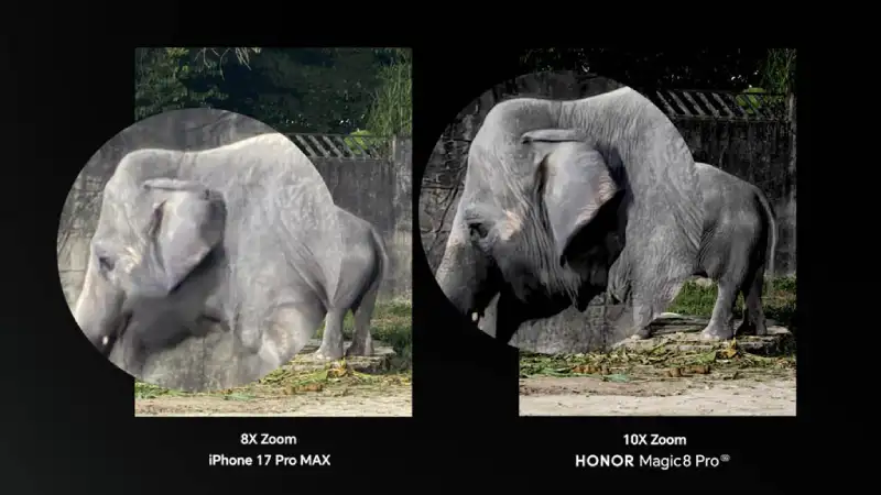 تفوّق Magic 8 Pro بالفعل على جهاز أبل من حيث الوضوح والدقة في تفاصيل الصورة، وكذلك دقة الألوان المستخلصة، والتفاصيل الحادة، والحفاظ على الأشكال الطبيعية والصحيحة للحيوانات البرية، وفقاً للصور التي نشرتها شركة Honor.