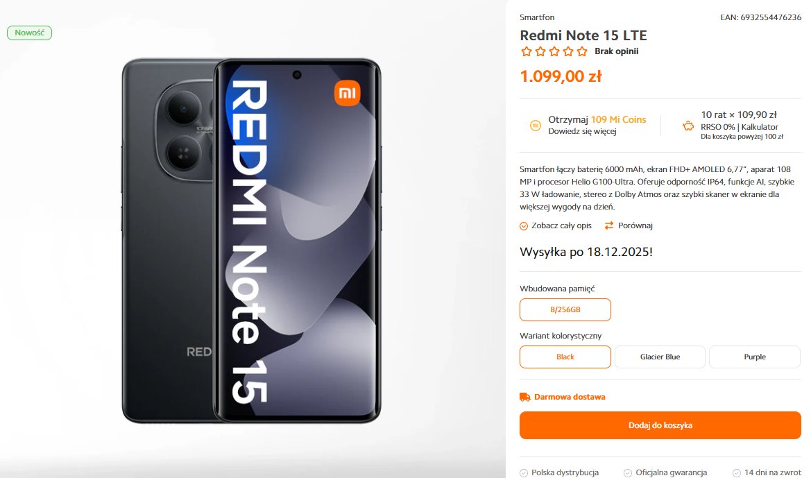 لم تُعلن الأسعار الأوروبية الرسمية بعد بشكل كامل، لكن أسعار هاتف Redmi Note 15 في بولندا قد نُشرت، مما يسمح لنا باستنتاج التكاليف المحتملة في باقي الدول الأوروبية.