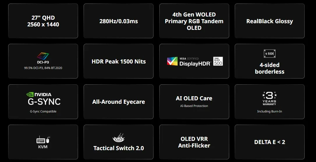 تعتمد الشاشة الجديدة على تقنيات الجيل الرابع من لوحات WOLED التي تنتجها شركة LG Display، وهي تأتي كنسخة مطورة ومحسنة من طرازها السابق الذي حقق نجاحاً كبيراً، مع التركيز على تلبية رغبات اللاعبين الباحثين عن التفاصيل البصرية العميقة والواقعية.