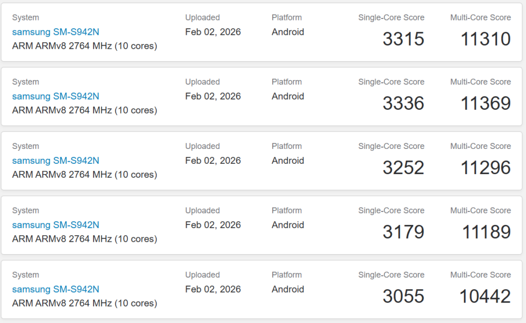 رصدت منصات الاختبار العالمية هاتف Samsung Galaxy S26 لأول مرة، حيث ظهرت النسخة المخصصة للسوق الكورية الجنوبية التي تحمل رقم الطراز SM-S942N على قاعدة بيانات Geekbench، لتكشف عن تفاصيل تقنية مثيرة تتعلق بمستقبل سلسلة الهواتف الرائدة من العملاق الكوري.