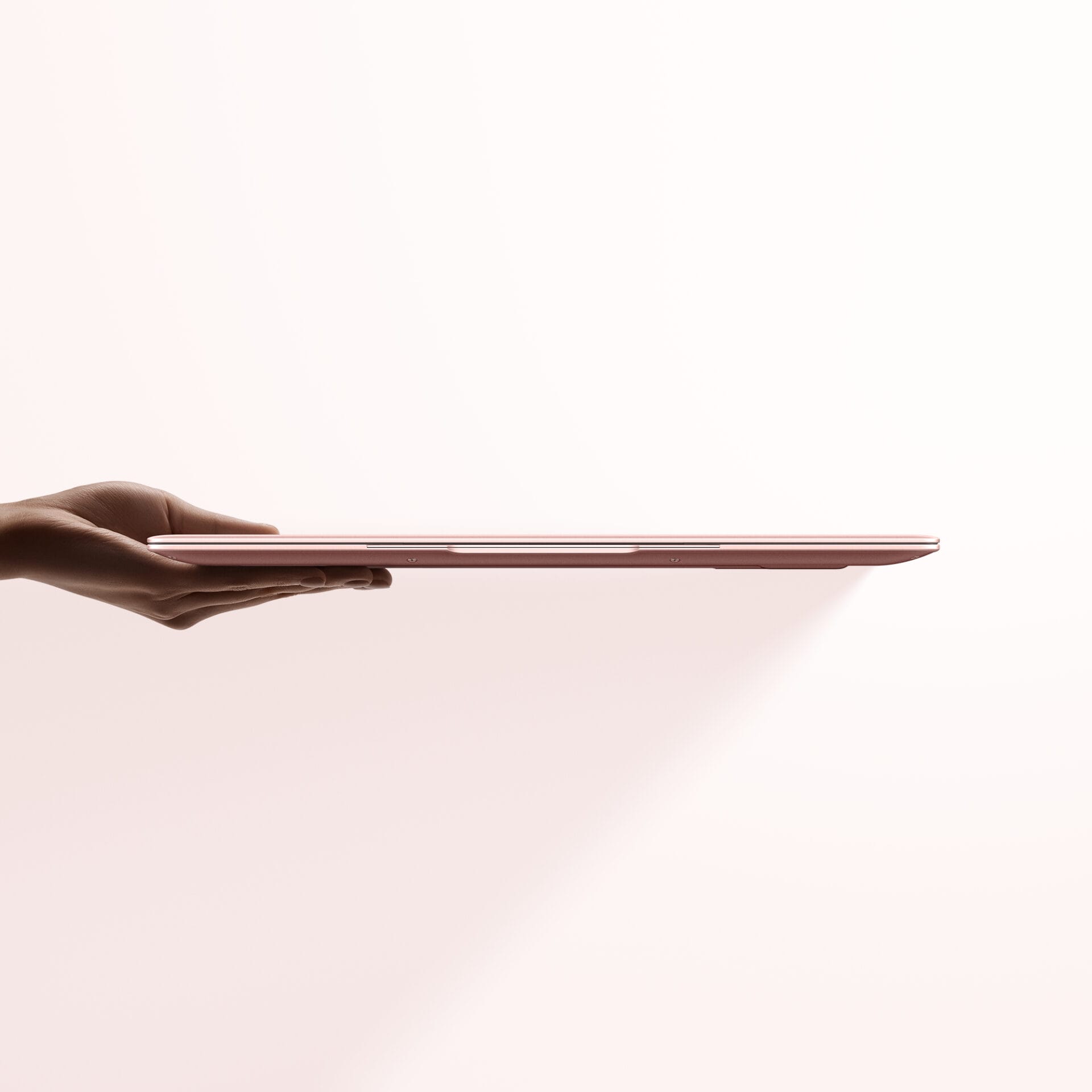 تبنت الشركة نهجاً هندسياً متطوراً في تصميم هيكل الجهاز، حيث استخدمت سبيكة "Velvet Magnesium" التي تمنح المستخدم ملمساً مخملياً ناعماً مع الحفاظ على الصلابة الهيكلية، ويتميز اللون الجديد بدرجة تشبع منخفضة ومظهر "Matte" مطفأ يبتعد عن الألوان الزاهية الصارخة، مما يضفي لمسة من الوقار المهني على الهيكل المعدني النحيف والمصقول بعناية فائقة.