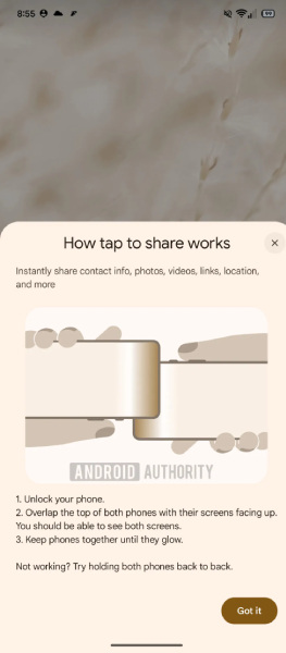 نجح الخبراء في تفعيل الميزة ضمن نسخة Google Play Services v26.15.3، حيث كشفت التقارير أن العملية تبدأ بمجرد تقريب الجزء العلوي من هاتفين مفتوحي القفل، مما يتيح لمقتني أخبار المحمول مشاركة الروابط والمواقع الجغرافية والصور بسرعة فائقة، دون الحاجة للتعقيدات التقليدية التي كانت تتطلبها عمليات الإرسال السابقة.